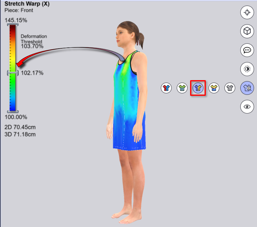The indication is shown interactively on the bar following the mouse movement over the map on the 3D garment.