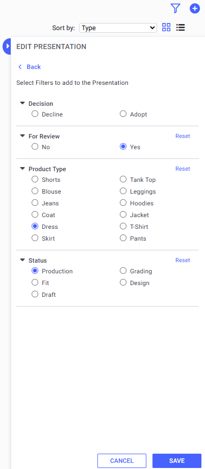 Presentation Boards can now be filtered