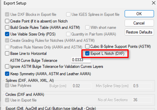 Note: The default remains unchecked, where L‑Notches export as V‑Notches, as before.